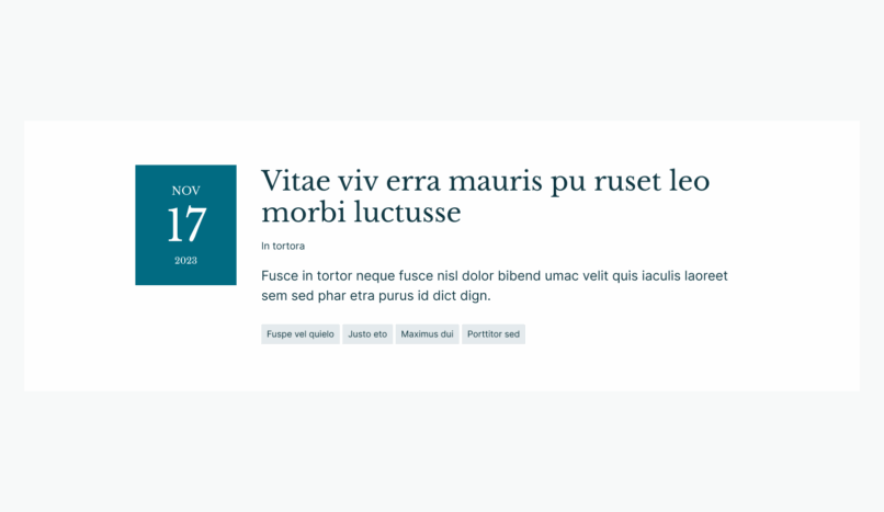 Content automatically drawn from page title, featured text, date, time, location and topics. Includes button link options.