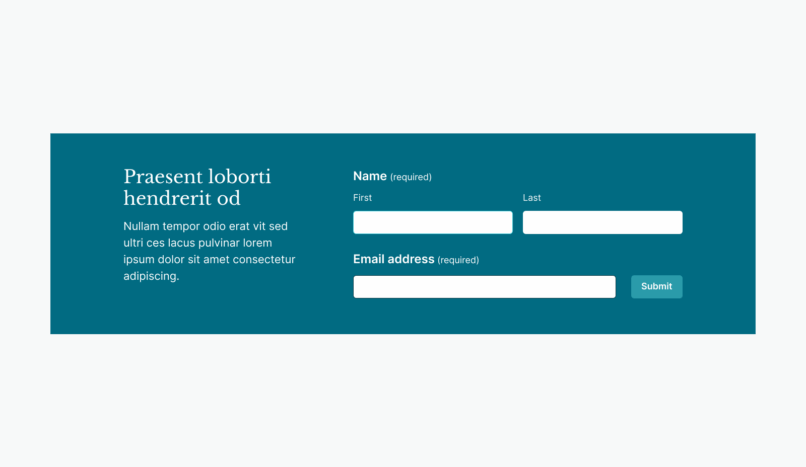 Includes options for background colour, heading and teaser text, plus various input, layout, validation and other configuration options.