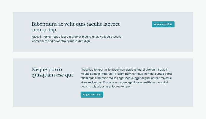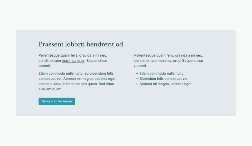 Includes options for background colour, number of columns, headings and body text, and button link options.